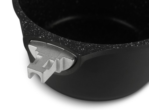 - Garnki są wykonane z aluminium, oraz posiadają marmurkową powłokę, dodatkowo powleczoną nieprzywieralną powłoką non-stick.