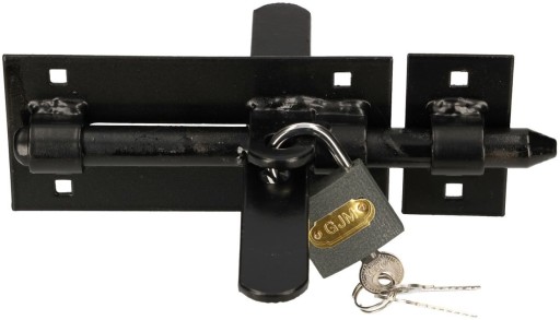 ЗАЩЕЛКА ДВУСТОРОННЯЯ ДВЕРНАЯ, ЧЕРНАЯ, + НАВЕСНОЙ ЗАМОК