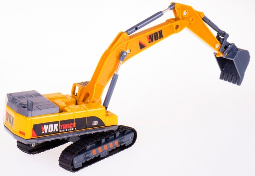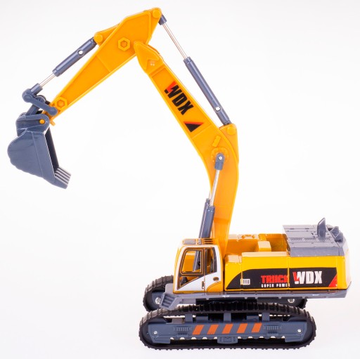 Koparka posiada obrotowy korpus o 360 stopni, na którym znajduje się ruchome składane ramię z ruchomą łychą, aby zabawa była jeszcze lepsza.
