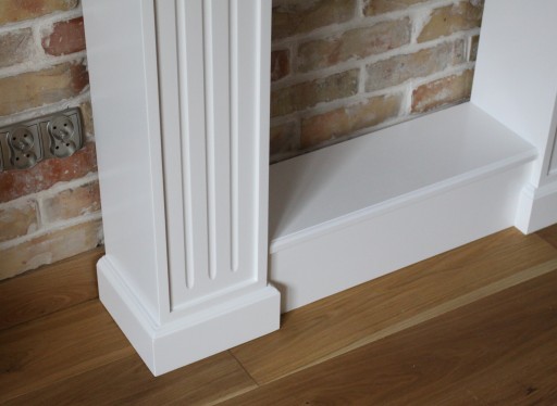 Atrapa kominkowa wykonana z drewna wewnątrz wstawione jest lustro.