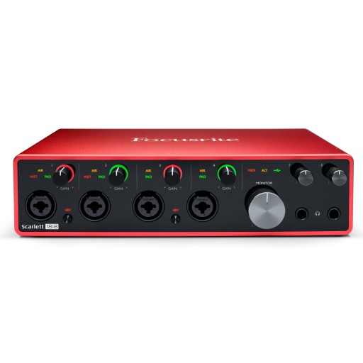 Nasz legendarny interfejs audio 18i8 to zdobywca niejednej platynowej płyty. Urządzenie zyskało już światową sławę ponieważ społeczność muzyków, producentów i home-recorerów korzysta z tego legendarnego rozwiązania. Scarlet 18i8 to idealne rozwiązanie dla pierwszych profesjonalnych nagrań Twojego zespołu. Z taką ilośćią wejść instrumentalnych możesz na prawdę dużo!