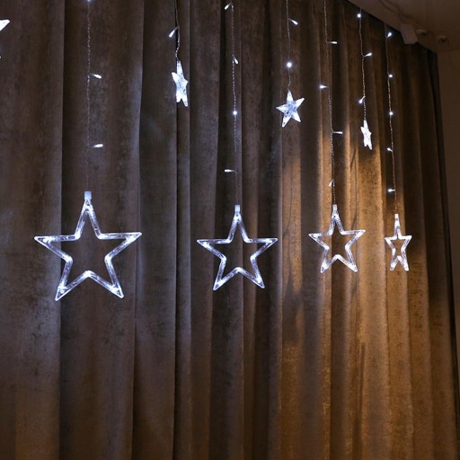 Kurtyna posiada 12 sztuk gwiazd świetlnych oraz dodatkową wtyczkę co pozwala na łączenie kilku kurtyn.
