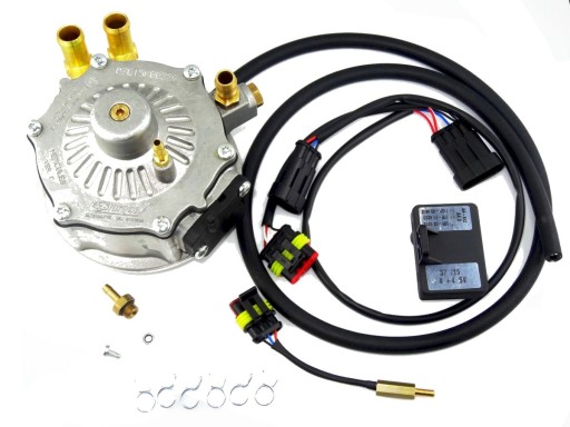 Reduktor wraz z zewnętrznym kompletem modyfikującym stary czujnik ciśnienia i temperatury do instalacji ELIOS z listwą wtryskową MATRIX / ATLAS, który pierwotnie był montowany na reduktorze.