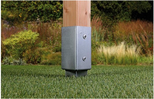 Podstawy wykonane zostały z blachy stalowej pokrytej cynkiem ogniowym. Podstawy te wykorzystywane są do montażu słupków drewnianych w gruncie. Wysoki na 150 mm korpus zapewniana mocne i profesjonalne połączenie elementów konstrukcyjnych.