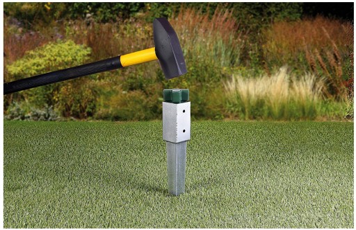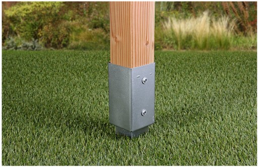 Podstawa wbijana do ziemi wykonana z grubej blachy 2 mm. Pokrycie antykorozyjne: ocynk ogniowy. Ułatwia budowę altan, palisad, pergol, ogrodzeń itp.