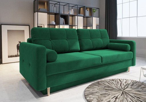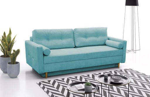 Kanapa rozkładana PASTELLA posiada funkcję spania oraz duży pojemnik na pościel, który znacznie ułatwi przechowywanie pościeli.
