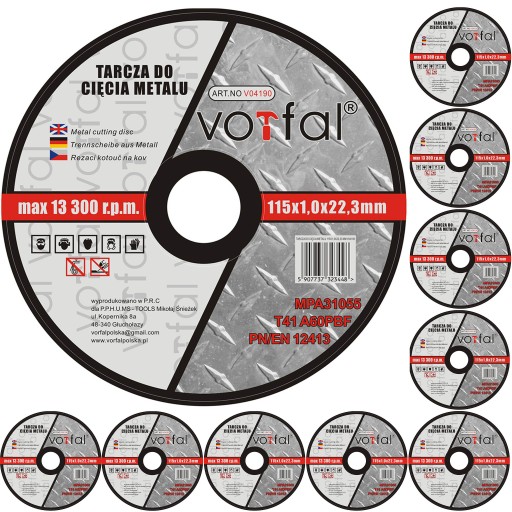 ZESTAW TARCZ DO CIĘCIA METALU 10 SZTUK VORFAL 115 x 1,0 x 22,23