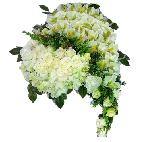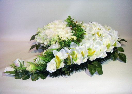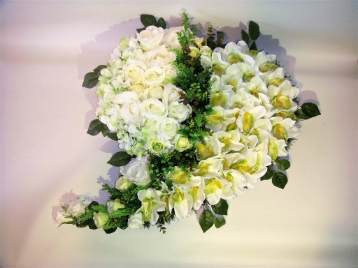 Oferowana kompozycja jest bardzo duża, solidnie (kwiaty wklejane) i starannie wykonana z dbałością o każdy detal w naszej pracowni florystycznej, dzięki swej oryginalności i subtelności przyciąga wzrok innych i będzie trwałą, niespotykaną ozdobą grobu bliskiej osoby.