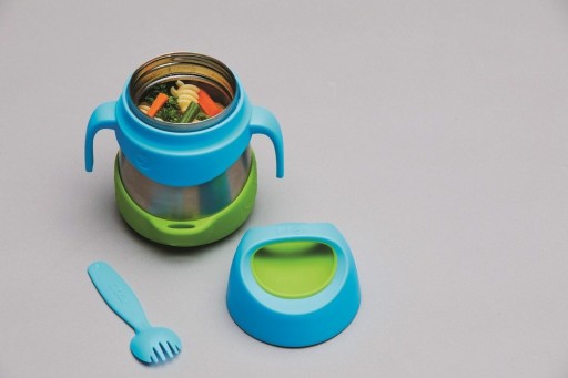 -do termosu dołączono silikonowy bezpieczny widelczyk, który mocowany jest do silikonowej podstawy (kompaktowy zestaw, który łatwo zabrać ze sobą tam, gdzie będzie potrzebny);