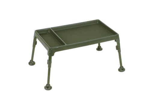 Praktyczny, stabilny na miękkim podłożu stolik posiadający dwie przegródki na najpotrzebniejsze rzeczy ze specjalną, antypoślizgową powierzchnią.