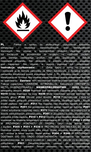 - Produkt skrajnie łatwopalny. Unikać źródeł otwartego ognia lub żaru,