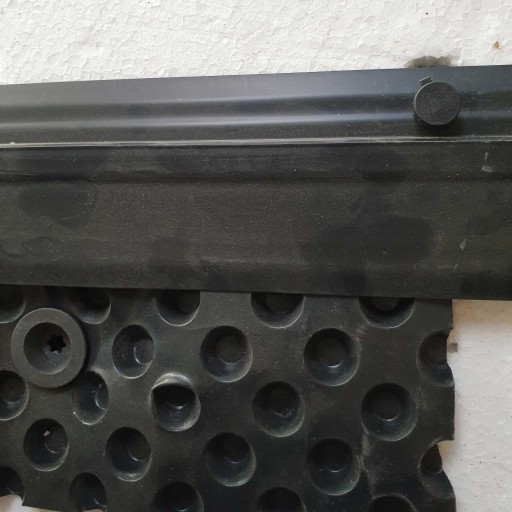 Kołek wkręt z tworzywa do montażu listwy wykończeniowej do folii fundamentowej-kubełkowej na styropianie lub styrodurze.