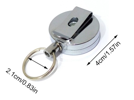 Metalowy retraktor (zwijana smycz / linka metalowa), w formie breloka z zawieszką (1 sztuka).
