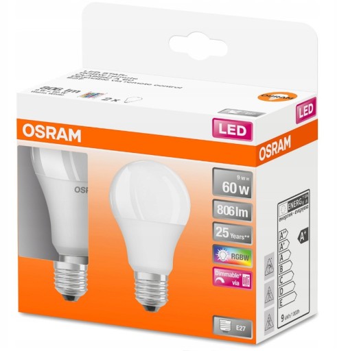 2 светодиодные лампы E27 9 Вт 60 Вт 806 лм OSRAM RGBW + ПУЛЬТ ДИСТАНЦИОННОГО УПРАВЛЕНИЯ