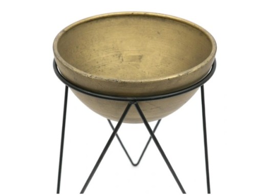 Donica / osłonka złota, z czarnym stojakiem. Jej wyjątkowy wygląd sprawi, że będzie pięknie się prezentowała w Twoim domu, a dzięki swojej estetyce będzie bardzo przyjemnym dodatkiem. Nie posiada otworu do odpływu wody.