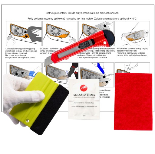 - rakla z filcem, ostry nożyk do cięcia folii, koncentrat płynu do aplikacji, środki do oczyszczenia i odtłuszczenia powierzchni - które od nas otrzymujesz w zamówieniu