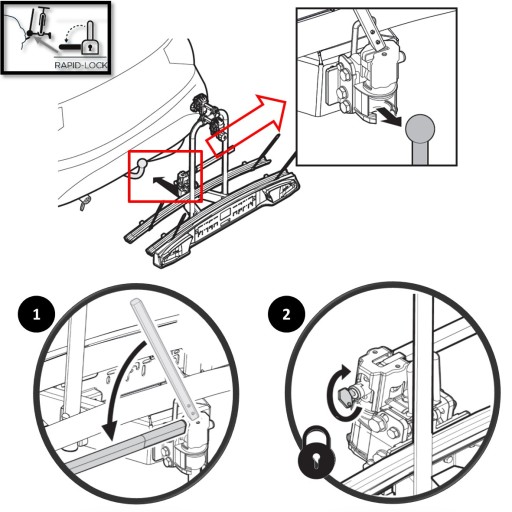 Bagażnik z funkcją uchyłu na dwa rowery montowany na haku holowniczym - z zabezpieczeniem antykradzieżowym