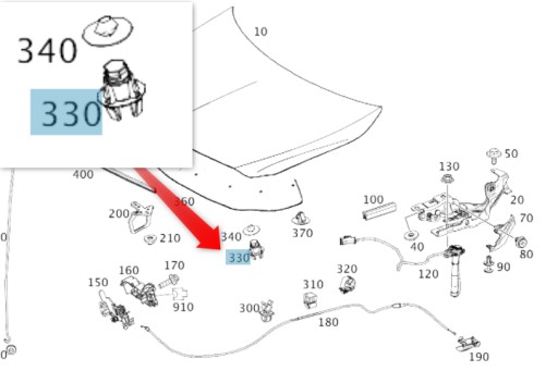 Oryginalny nowy odbojnik pokrywy silnika w pojazdach Mercedes-Benz