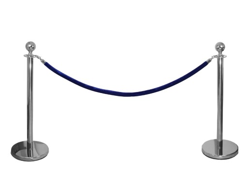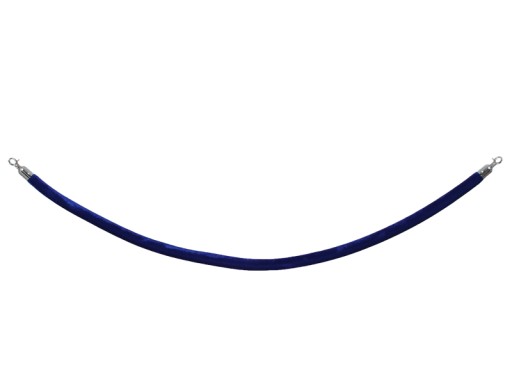 Niebieska lina do słupków odgradzających. Zamontowane na końcach sznura karabińczyki pozwalają w łatwy i szybki sposób zamocować na słupkach hotelowych.