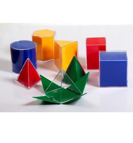 Każda bryła dodatkowo zaopatrzona jest w siatkę wykonaną z różnokolorowego tworzywa, którą po złożeniu możemy całkowicie umieścić we wnętrzu bryły „na oczach uczniów” dzięki temu, iż ścianki brył są przeźroczyste.