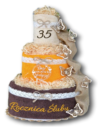 Tort w kolorystyce pomarańczowej :(haft do wyboru z podanych propozycji, rocznicę można zmienić np: 5,15,30....)