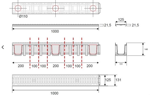 - 3 odwodnienia liniowe 1000x98 długości 1 mb z funkcją łatwego łączenia i kratą PP