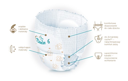 Pieluchomajtki Dada Pants Extra Care 6 EXTRA LARGE są przeznaczone dla dzieci o wadze powyżej 16 kg.