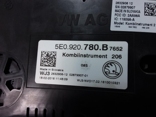 OCTAVIA III 1.4 TSI СЧЕТЧИК ЧАСОВ EU 5E0920780B