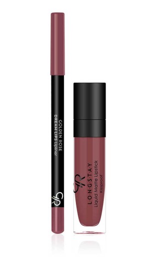 Zestaw do makijażu ust, składający się z matowej pomadki w płynie oraz trwałej konturówki, które ułatwią wykonanie perfekcyjnego makijażu ust.