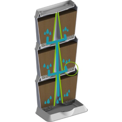 Minigarden One posiada specjalny system nawadniania i innowacyjny, grawitacyjny mechanizm odprowadzania nadmiaru wody. Nadmiar ten odprowadzany jest do podstawki umiejscowionej pod systemem. Ma to ważne znaczenie dla samowystarczalności roślin.