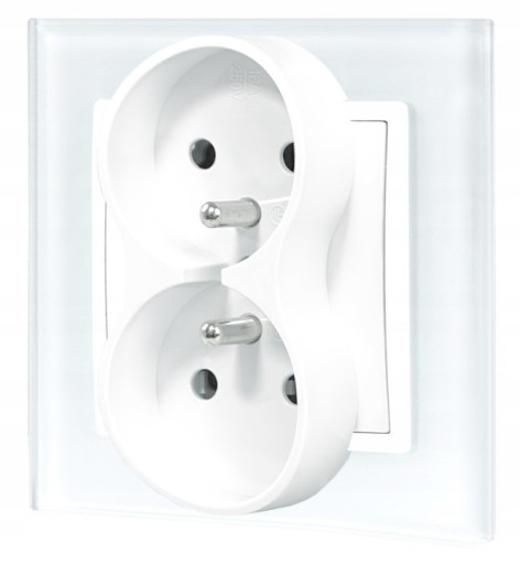 GNIAZDKO PODWÓJNE Z UZIEMIENIEM, W RAMCE SZKLANEJ, W KOLORZE BIAŁYM.