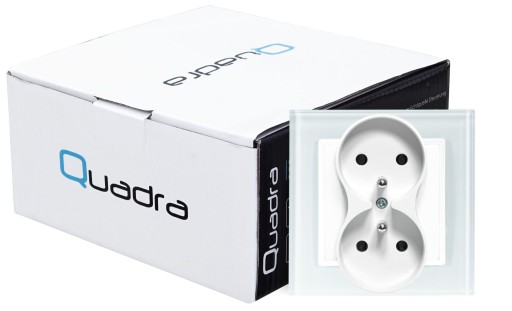 Nowoczesne włączniki światła, gniazda oraz ramki serii Quadra, do sterowania oświetleniem. W kolorze białym.