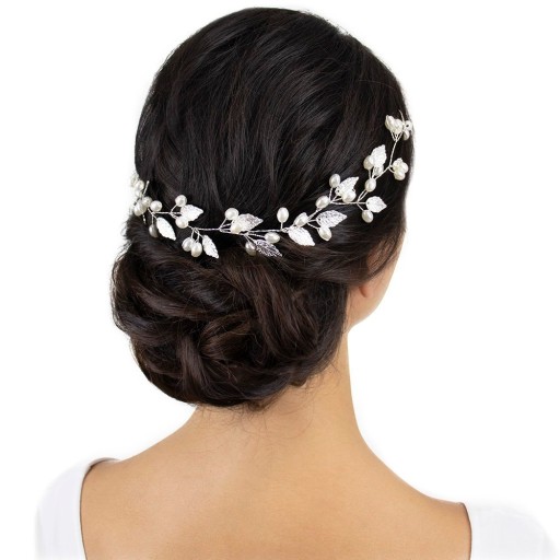 OZDOBA DO WŁOSÓW ślubna SREBRNA perły LISTKI ślub - 37404 Miss Glow
