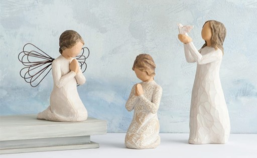 Każda obecnie produkowana figurka, która zagości w Państwa domu jest ręcznie malowana. Jej ekspresja ujawnia się poprzez gesty… pochylenie głowy, ułożenie rąk, pozycja ciała. Uproszczenie formy i brak twarzy poszczególnych figurek są bardzo istotne dla Willow Tree. Susan ma nadzieję, że będzie to dla Państwa nie bez znaczenia i pomoże w dokonaniu odpowiedniej interpretacji zarówno dla osoby dającej jak i obdarowanej.
