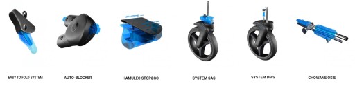 SAS (system absorpcji wstrząsów) oraz DMS (zapamiętujący położenie koła) – zwiększają komfort prowadzenia wózka po nierównym podłożu.