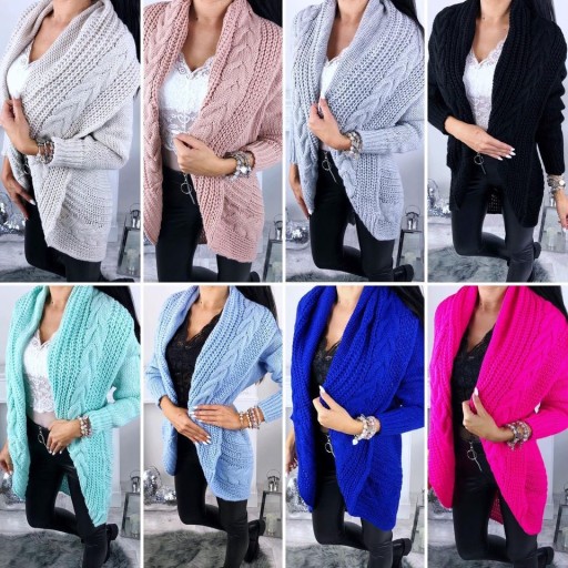 CIEPŁY KARDIGAN NARZUTKA SWETER WARKOCZ -- KOLORY