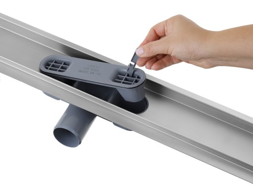 Dzięki regulowanej wysokości rynienki istnieje możliwość łatwego montażu odpływu w posadzce o dowolnej wysokości wylewki.