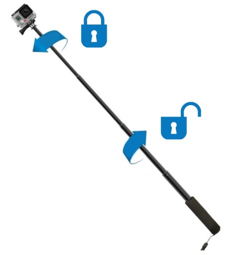 Poszczególne moduły systemu teleskopowego zostały wyposażone w specjalne zabezpieczenie przed niechcianym złożeniem monopodu - ich przekręcenie w lewo powoduje ich stabilne zablokowanie na dowolnej długości. Odblokowanie następuje po przekręceniu w prawo.