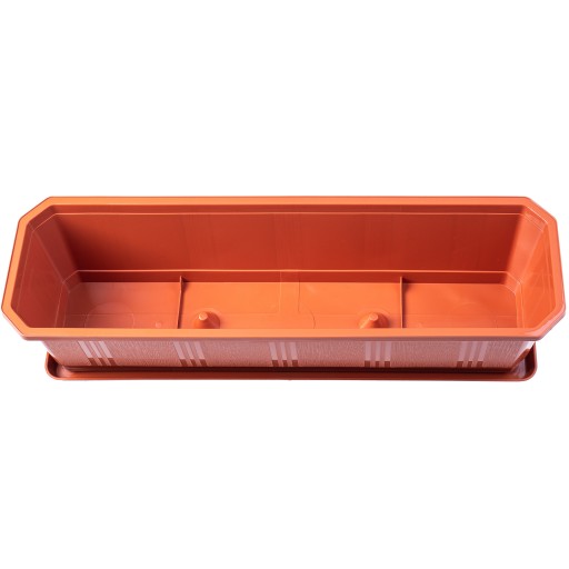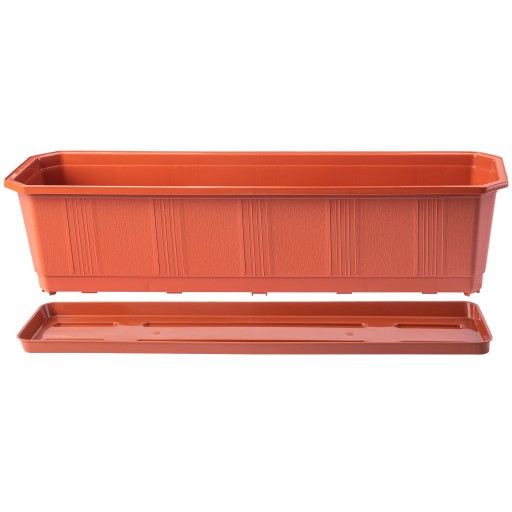Zgrabna i estetycznie wykonana donica balkonowa z podstawką, która razem z ulubionym kwiatem w środku majestatycznie prezentuje się na balkonie, tarasie czy parapecie okiennym. Dzięki niej stworzymy ciekawą aranżację, która doda otoczeniu świeżego charakteru. Elegancja i subtelność donicy idą w parze z jakością i wytrzymałością.