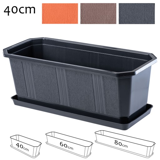 ✅Dostępne kolory doniczki to terakota, brązowy i grafitowy. W zależności od potrzeb oraz ilości wolnego miejsca, możesz zdecydować się na model o długości 40 cm, 60 cm lub nawet 80 cm.