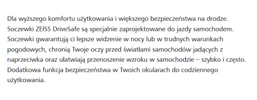 SOCZEWKI OKULAROWE ZEISS DRIVESAFE UV dla kierowców
