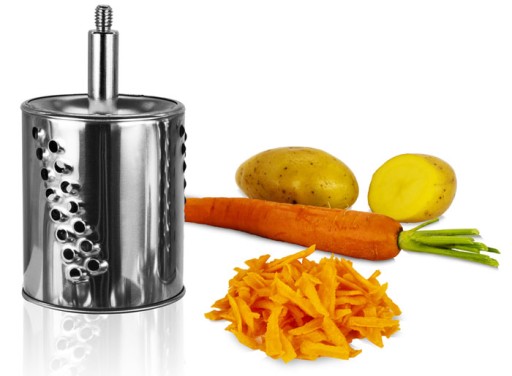 Nachodzi cię czasem ochota na placki ziemniaczane albo ryż z jabłkami, ale rezygnujesz z ulubionej potrawy, bo nie masz siły ani chęci na uciążliwe tarcie warzyw czy owoców? Z naszym młynkiem raz na zawsze uwolnisz się od tego problemu i w mig zetrzesz lub zmielisz wszystkie warzywa i owoce, a nawet twarde orzechy i sery. Łatwo poszatkujesz też warzywa do sałatki lub pokroisz ogórki na cienkie plasterki – w sam raz do mizerii.