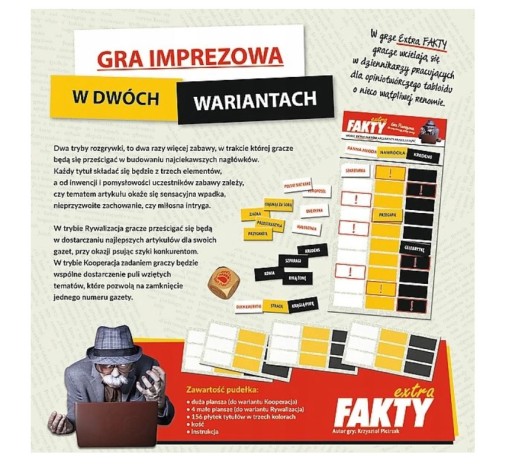W grze Extra FAKTY gracze wcielają się w dziennikarzy pracujących dla opiniotwórczego tabloidu o nieco wątpliwej renomie. Dwa tryby rozgrywki, to dwa razy więcej zabawy, w trakcie której gracze będą się prześcigać w budowaniu najciekawszych nagłówków. Każdy tytuł składać się będzie z trzech elementów, a od inwencji i pomysłowości uczestników zabawy zależy, czy tematem artykułu okaże się sensacyjna wpadka, nieprzyzwoite zachowanie, czy miłosna intryga.