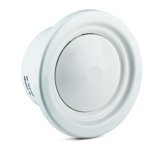 Wbudowany w anemostat ruchomy talerzyk precyzyjnie wyznacza kierunek nawiewu powietrza. Służy także estetycznemu zakończeniu systemu wentylacyjnego.