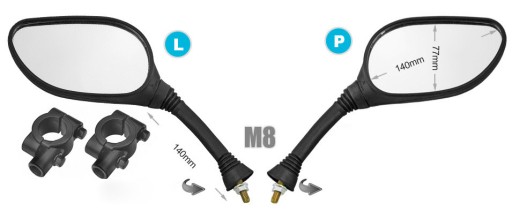 - Lusterka posiadają gwint M8, oba prawoskrętne.