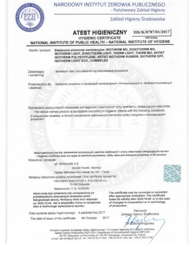 Produkt posiada atest higieniczny Państwowego Zakładu Higieny Nr HK/K/0787/01/2017.