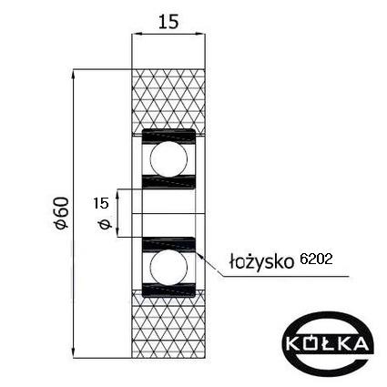 ROLKA POLIURETANOWA Z ŁOŻYSKIEM fi. 60 mm