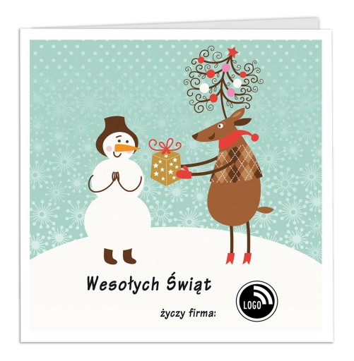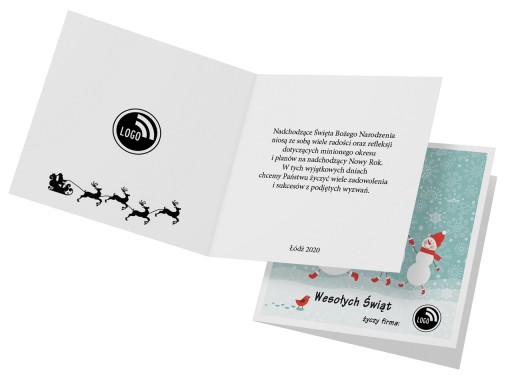 Życzenia do wnętrza kartki mogą być dowolne, rozmieszczenie tekstów również, logo Państwa firmy możemy umieścić może umieścić w dowolnym miejscu kartki, również we wnętrzu kartki świątecznej.