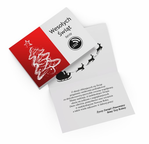 Życzenia do wnętrza kartki mogą być dowolne, rozmieszczenie tekstów również, logo Państwa firmy możemy umieścić może umieścić w dowolnym miejscu kartki, również we wnętrzu kartki świątecznej.