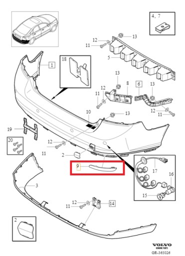 ОТРАЖАТЕЛЬ ЗАДНИЙ ЛЕВЫЙ VOLVO S40 II 08-12